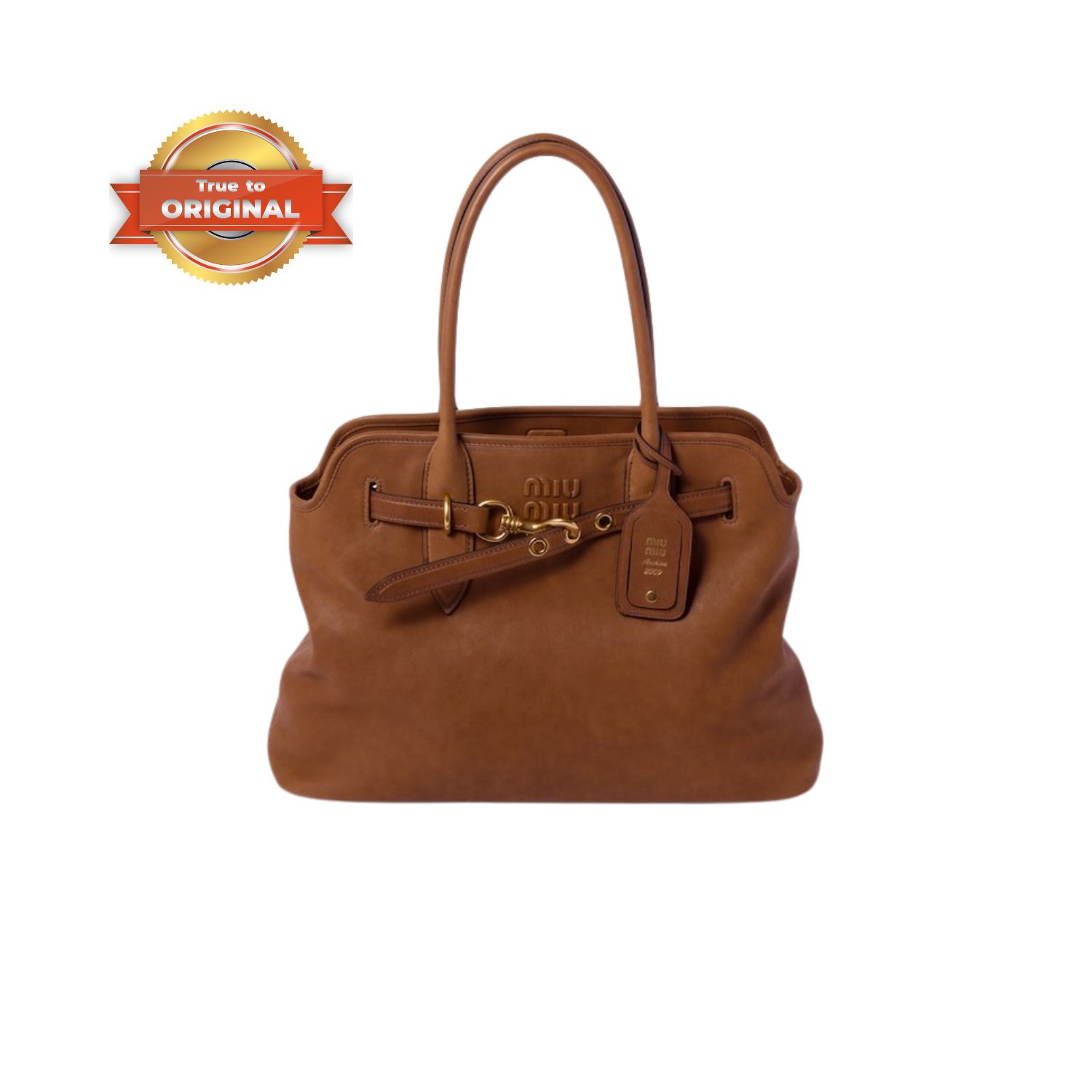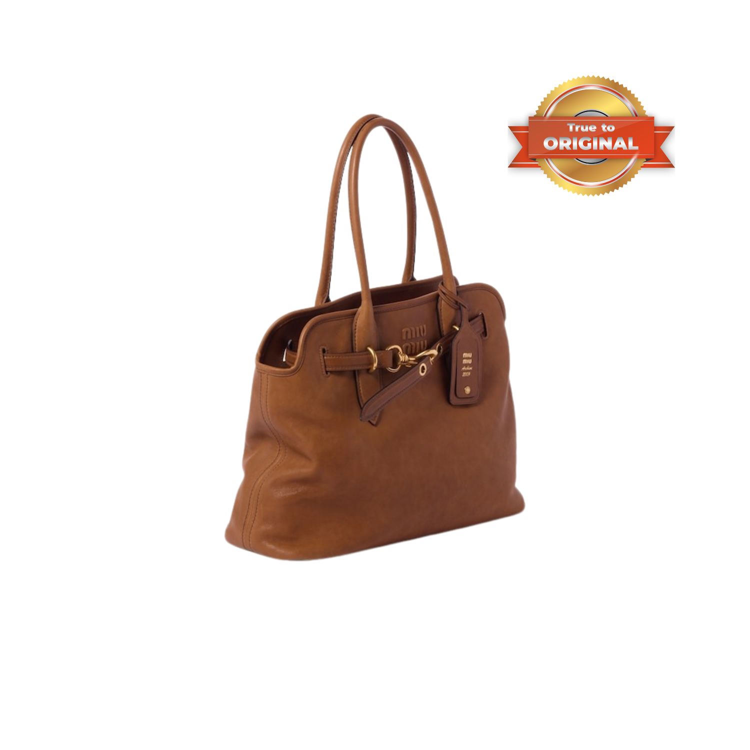 [True-to-ORIGINAL] Miu Miu Aventure Nappa Leather Bag Oak For Women 31cm/12in - 5BG291_2BBL_F0316_V_OOO