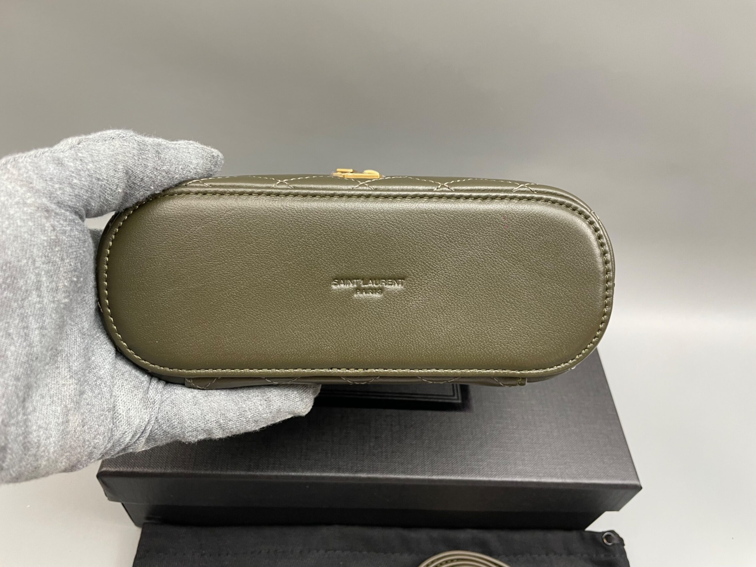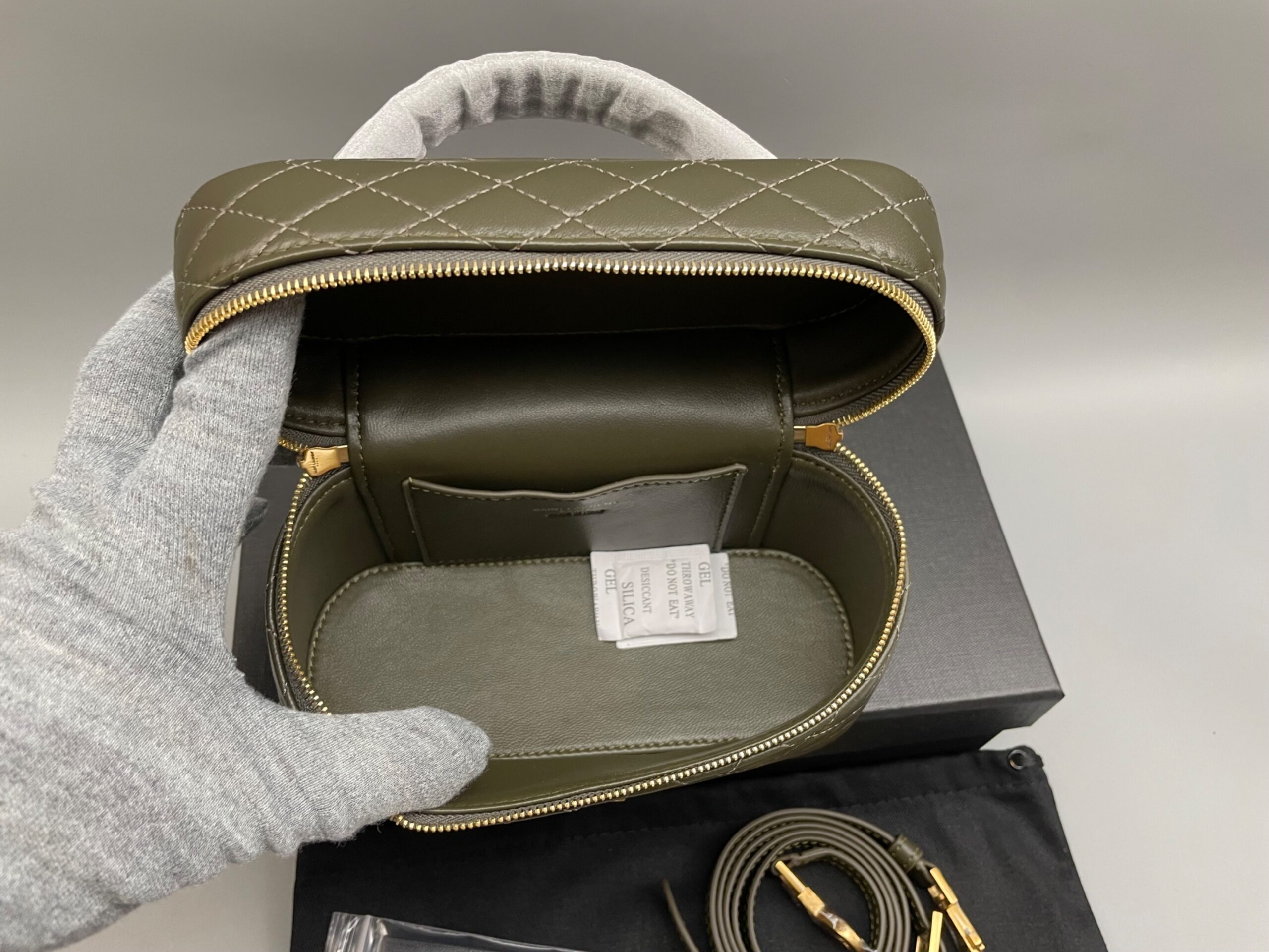 This versatile piece is fully lined in leather and provides bespoke carry options with an adjustable and detachable strap.