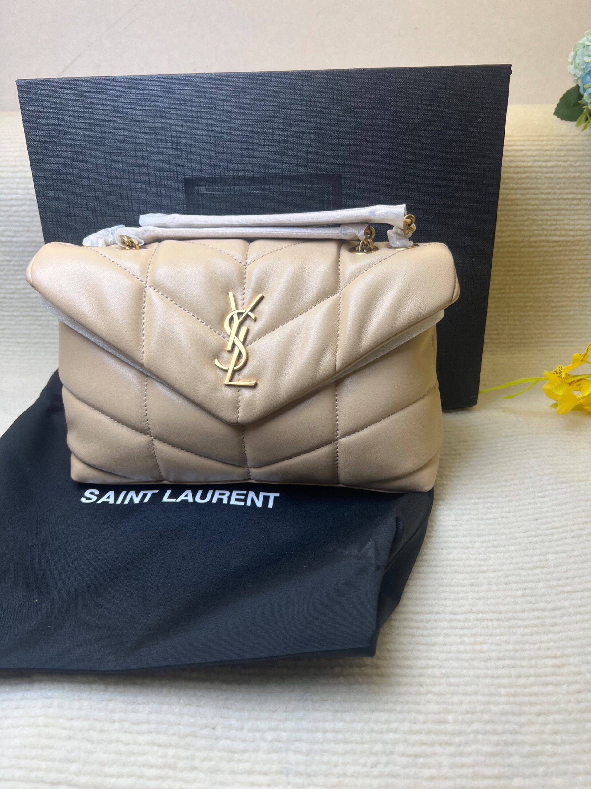 [True-to-ORIGINAL] Saint Laurent Toy Puffer Dark Beige For Women 23cm/9cm - 7593371EL072721