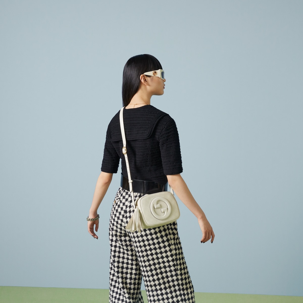 The Round Interlocking G that characterizes the Gucci Blondie line originates from the House archives. Signature pieces such as this Gucci Blondie shoulder and crossbody bag reinterpret the emblem as a subtler leather patch detail.