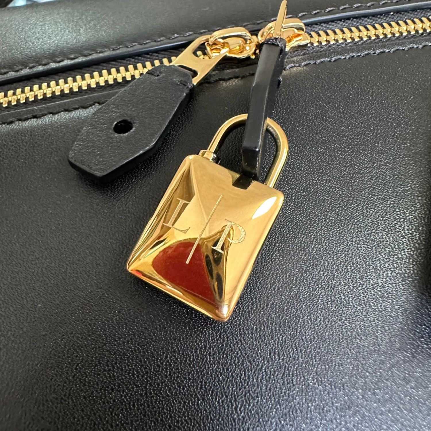 Two detachable, interchangeable, three-dimensional charms are included: a padlock reinforces the zipped closure, while the other is found inside the leather keychain Golden metal hardwareInside pocket with eyelet button